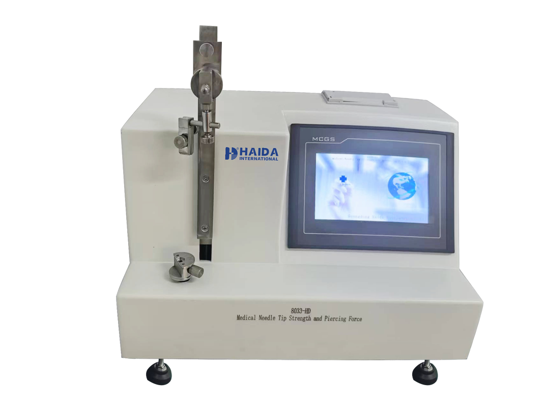 Medical Needle Tip Strength and Piercing Force Tester is used to test the puncture force performance of the syringe tip, evaluate whether the sharpness of the syringe meets the standard requirements, and is also known as the Syringe puncture force tester.
